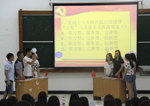 【本网讯】为扎实推进“两学一做”学习教育有关要求,进一步促进党员同志深入学习党章党规、学习习总书记系列讲话,促进每位党员自觉按照党员标准规范言行,进一步坚定理想信念,提高党性觉悟,管理学院党总支于2016年6月15日晚上,在L4102教室举办“两学一做”党员知识竞赛。