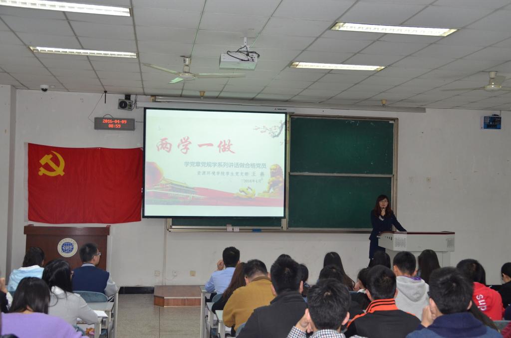 【本网讯】为认真贯彻执行党中央《关于在全体党员中开展“学党章党规、学系列讲话,做合格党员”学习教育方案》,4月9日上午,资源环境学院学生党支部开展“两学一做”专题活动。学生党支部全体党员,学生党支部书记王燕老师参加指导。