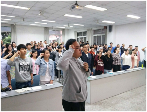 活动开始前,由学生党员代表陈祥禾带领全体党员宣读入党誓词,重温入党时的坚定信念。