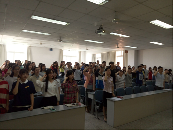 【本网讯】 5月4日上午,大气科学学院学生党支部在1406教室举行了“重温入党志愿、重温入党誓词”主题党日活动。会议由学生党支部书记刘宇老师主持,学院党总支副书记缪燕平、全体辅导员老师和学生党员参加了本次活动。