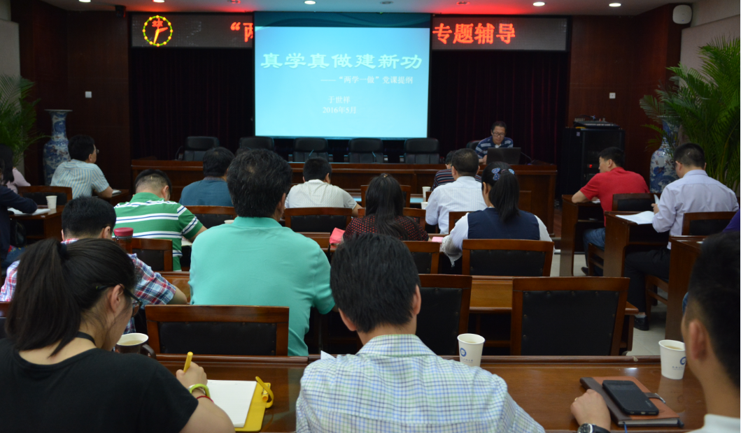 于世祥指出,“两学一做”学习教育,学是基础,做是关键;两学是手段,一做是目的。通过两学,用科学的理论武装党员头脑,增加向党性和宗旨意识;通过一做,激活每个党员个体的力量,才能焕发全党的整体活力;学做一致,按学的做,学做统一,不能学一套,做一套。他要求全体党员结合学校实际工作开展“两学一做”学习教育,搞清自己的身份和职责,以上率下;找准本单位、本部门存在的问题,有针对性地做;要求真务实,勇于担当作为,在教学科研、管理服务、学习实践和社会生活中自觉起好示范带头作用。