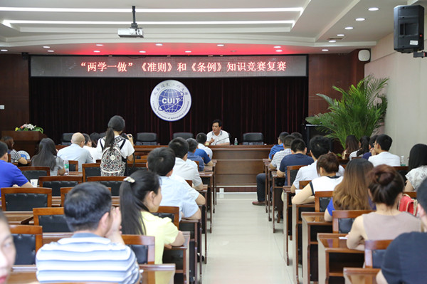 《准则》和《条例》知识竞赛分初赛、复赛和决赛三个阶段。经校纪委的精心筹备,各党总支组织初赛,择优选拔组建代表队参与此次复赛。每个代表队由3名教职工党员组成,其中均包含现职中层副职(六级)以上干部1名,具有较强的代表性和针对性。复赛设置填空题、判断题、单选题、多选题,采取闭卷考试、计算总分的方式进行。