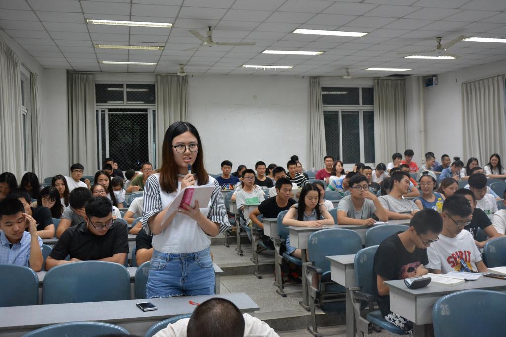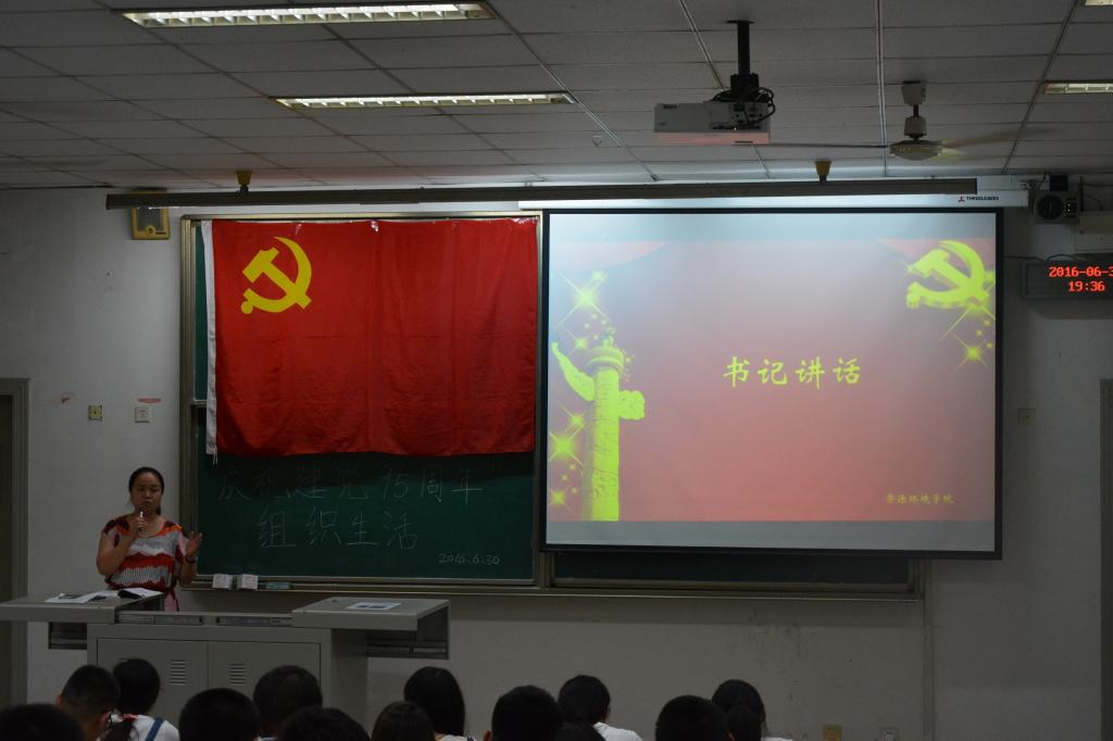 学生党支部书记杨镜霖老师讲话。杨镜霖老师结合《建党伟业》党性教育片阐述自己的感受。此外,她强调全体党员应认清自己的党员身份,有看齐意识,向党的理论和线路方针看齐,向习总书记看齐。