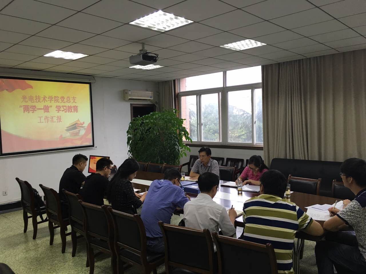 【本网讯】7月13日下午,学校“两学一做”学习教育第五督导组到光电技术学院督导检查“两学一做”学习教育工作开展情况。督导组由学校党委常委、校长助理、组织部部长肖月强带队,光电技术学院党总支全体成员,副院长杨定宇(列席)、教工党支部、学生党支部书记及成员参加了此活动。汇报会由光电技术学院党总支书记王嵩主持。