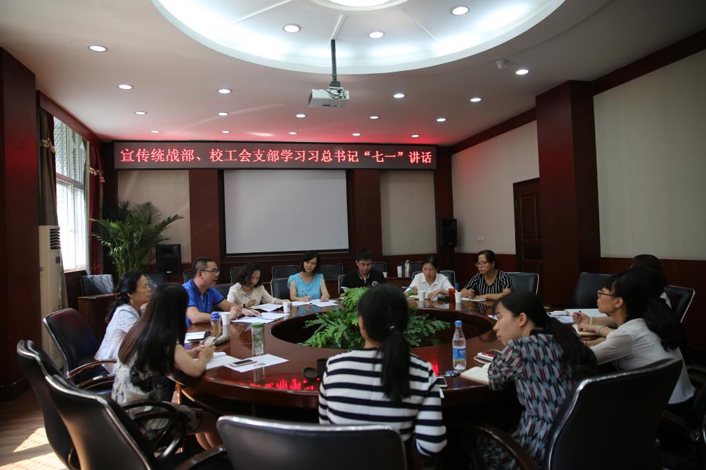 [本网讯]9月28日,校工会、宣传统战部党支部根据学校党委进一步落实“三会一课”制度的要求,组织全体党员在党员活动日开展专题组织生活,学习传达上级相关精神和要求,深入学习习总书记“七一”重要讲话,并围绕“两学一做”第二专题展开学习讨论。