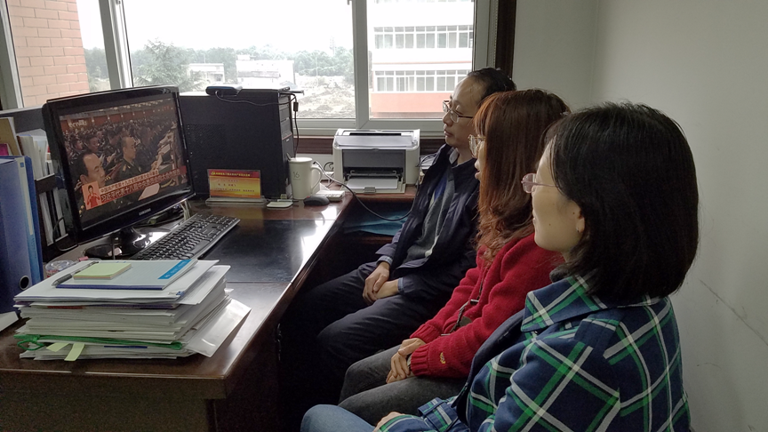 【本网讯】10月18日上午,发展规划处全体处级以下教职工在行政楼419办公室,在线收看了中国共产党第十九次全国代表大会开幕式直播,并认真聆听了习近平总书记大会报告。