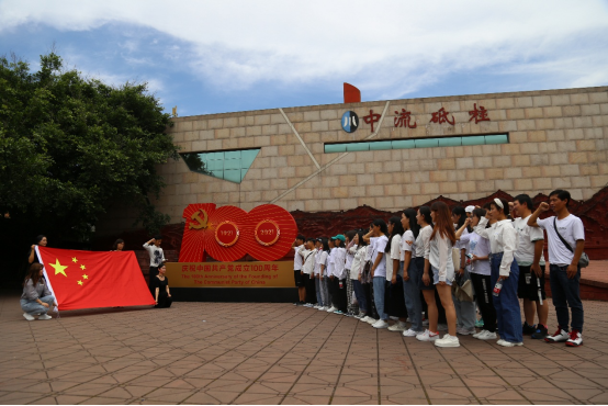 同学们在中流砥柱馆前庄严宣誓:我是中国青年,我是祖国忠诚的儿女,先烈夙愿在心,复兴大任在肩,我们要继承先烈光荣传统,发扬前辈的爱国精神,谨记党的教诲、自觉维护国家统一、维护民族团结,为祖国的繁荣昌盛,为民族的伟大复兴,共同奋斗!