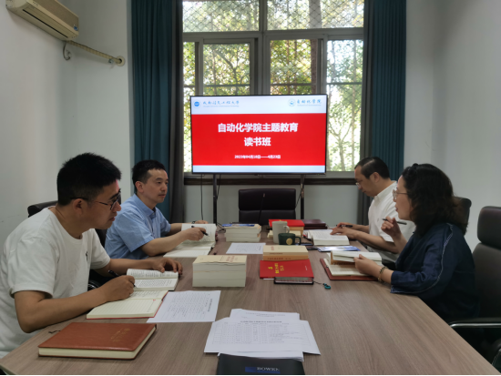 【本网讯】为扎实开展学习贯彻习近平新时代中国特色社会主义思想主题教育,自动化学院学习贯彻习近平新时代中国特色社会主义思想主题教育读书班于4月18日上午在信息楼121会议室开班。学院党委书记胡雪飞、院长张葛祥、党委副书记张勇、副院长刘鹏参加开班式。胡雪飞主持开班式并讲话。