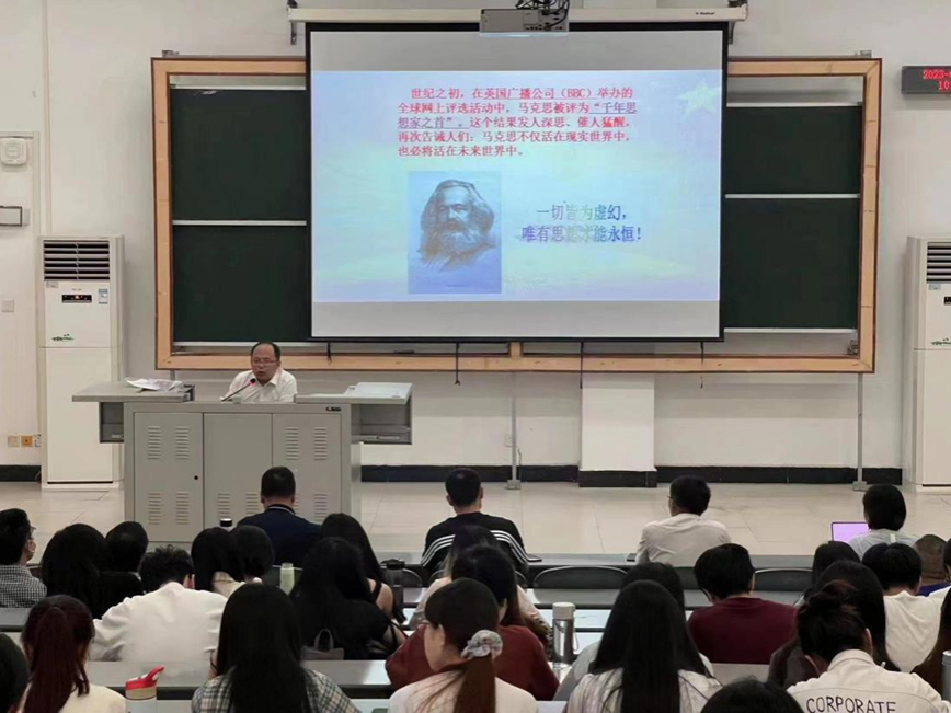 【本网讯】为扎实开展学习贯彻习近平新时代中国特色社会主义思想主题教育,准确把握其丰富内涵和实践要求,根据学院党委安排,6月25日上午,统计学院党委书记金明在龙泉校区3102教室讲授题为《深入学习习近平经济思想》的专题党课,统计学院全体师生党员到场聆听党课。